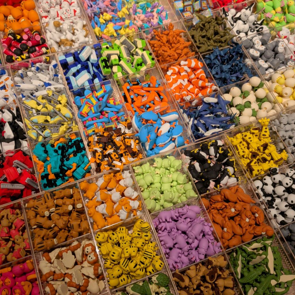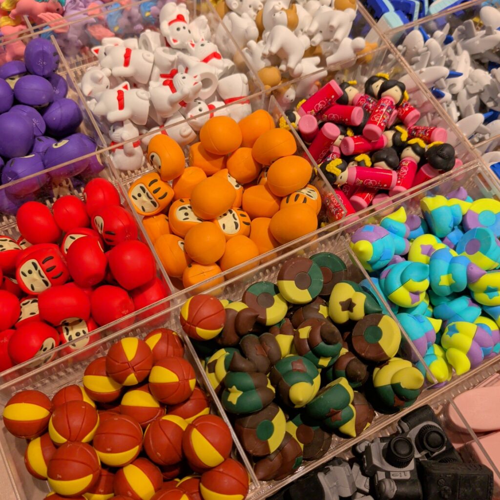 見てくださいこの大量のおもしろ消しゴムたち、圧巻ですよね・・・