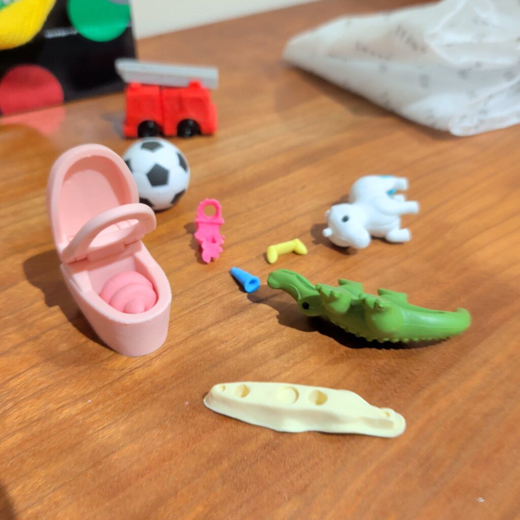 ちなみにこの便器の消しゴムはもれなくう〇こもついており、子供が大喜びしそうなギミックです。