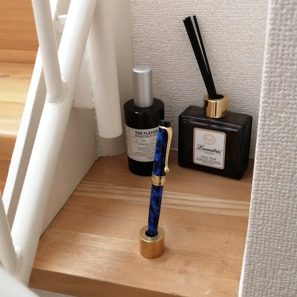 香水、フレグランスと一緒にペンを置いてみましたが、存在感が凄いです。