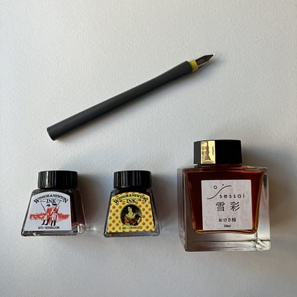 12 12月 気軽にインクを楽しめる万年筆つけペン”hocoro” 綺麗なインクを見て、気軽に色の風合いを書いて試したいってことありますよね。 実際にどんな色をするんだろ、この色を合わせてみたらどんな色になるんだろっていうあれです。 今回は万年筆ペン先のつけペンで気軽に色を楽しむことがで […]